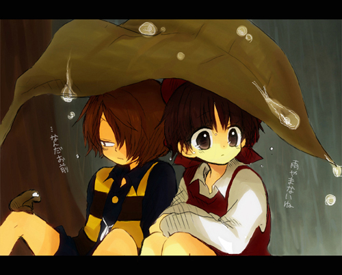 大きな葉っぱを傘代わりにしてるのが好きで描いてみました。かけなさ過ぎて絶望しましたohoooooo!!!!